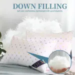 A down pillow is filled with the soft inner feathers from ducks or geese, providing a plush, luxurious feel with excellent breathability and comfort.